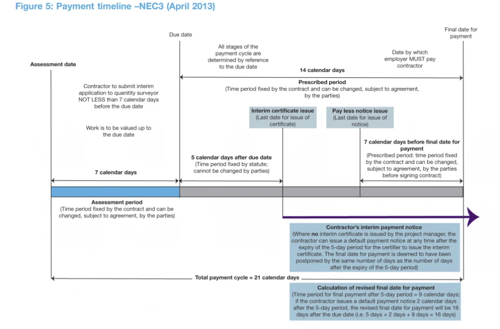 In this article we’re going to explain the interim payment process using an NEC contract. Some of the durations in this example may be slightly different for the contract you’re using. However, for the purpose of this article we will use the standard NEC 21-day payment cycle.