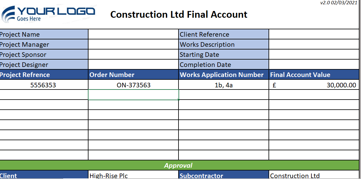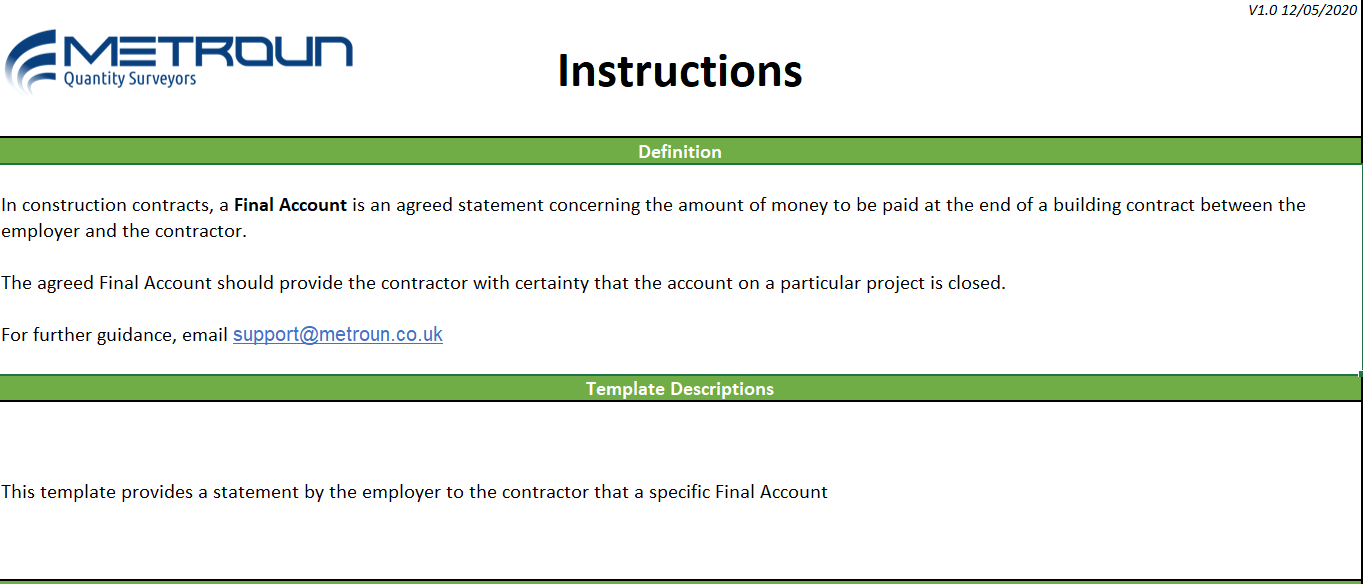 In construction contracts, a final account is an agreed statement concerning the amount of money to be paid at the end of a building contract by the employer to the contractor