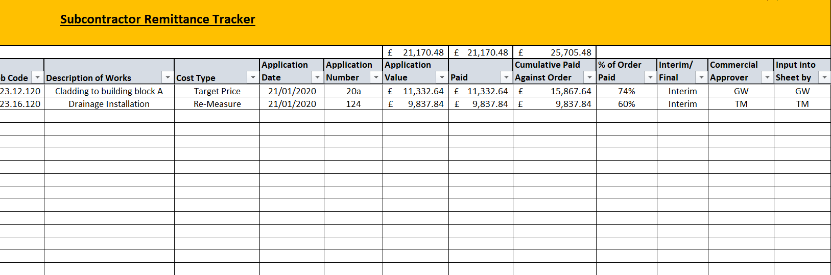 Subcontract Remittance Tracker